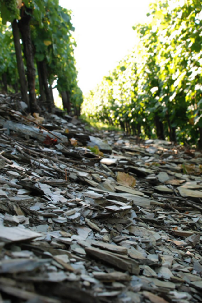 德國摩澤爾產(chǎn)區(qū)以出產(chǎn)優(yōu)質(zhì)的雷司令(Riesling)葡萄酒見長,其葡萄園里的土壤大多為藍(lán)色板巖和紅色板巖。這兩種土壤都較為貧瘠,擁有良好的排水性,在潮濕的生長季能防止葡萄根系因積水而腐爛。同時(shí),它們的儲(chǔ)熱性也十分優(yōu)秀,即使是在涼爽的年份,也能幫助葡萄藤順利成熟。此外,板巖土壤中富含酵母與細(xì)菌等微生物,產(chǎn)自這種土壤的雷司令葡萄酒往往帶有獨(dú)特的礦物質(zhì)風(fēng)味。