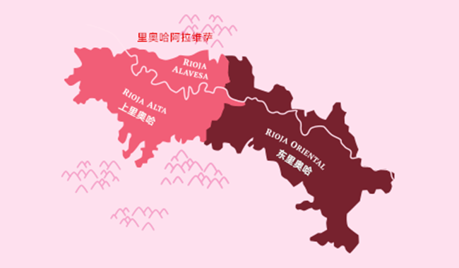 里奧哈位于西班牙北部,它北靠坎塔布里亞山脈(Sierra de Cantabria),南接伊比利亞山系(Sistema Iberico),沿埃布羅河(Ebro River)分布。里奧哈產(chǎn)區(qū)可以劃分為三個(gè)子產(chǎn)區(qū),分別是上里奧哈(Rioja Alta)、東里奧哈(Rioja Oriental)和里奧哈阿拉維薩(Rioja Alavesa)。