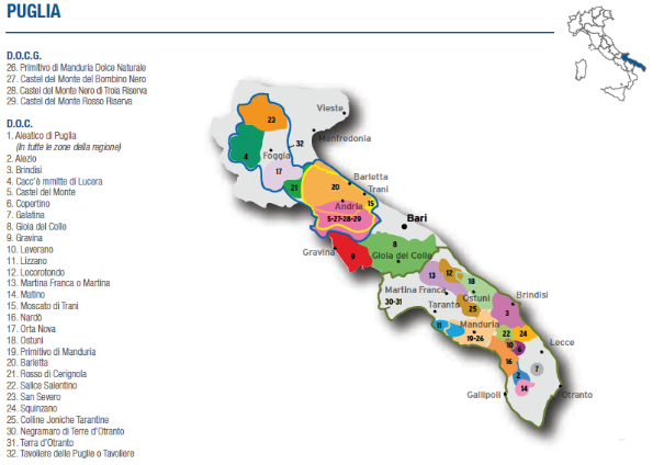 另外兩個桃紅葡萄酒產(chǎn)區(qū)都位于普利亞大區(qū)中南部。