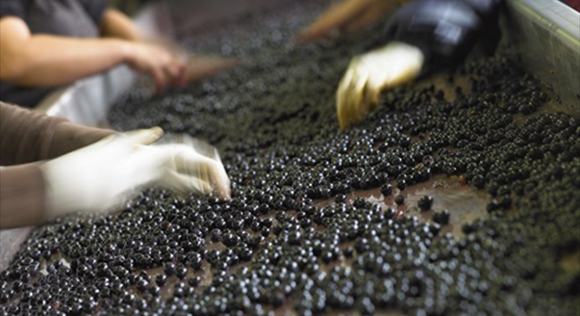 葡萄果實運送至釀酒廠后,許多酒莊尤其是釀造高品質葡萄酒的酒莊會選擇將果實放在分揀臺上進行人工挑選或使用機器進行篩選,剔除不健康或未成熟的葡萄。