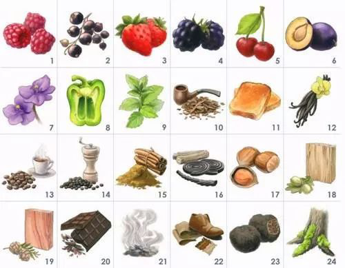 葡萄酒中的味道,主要有甜、酸、澀、苦幾種,還有就是香氣化合物,這些香氣化合物就是能讓人們嗅覺產(chǎn)生不同氣味感受的元素,而這些化合物可以讓我們聯(lián)想起各種熟悉的食物、香料和礦物質(zhì)的味道。在葡萄酒中,主要的果味一般按照紅葡萄酒和白葡萄酒來劃分: