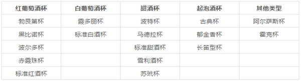 普通的葡萄酒愛好者自然沒有必要一一購買上述所有酒杯。對(duì)于剛剛開始學(xué)習(xí)品酒,只是想要輕松享受品酒樂趣的童鞋來說,一組簡單的酒杯組合就已經(jīng)能夠滿足需求,包括: