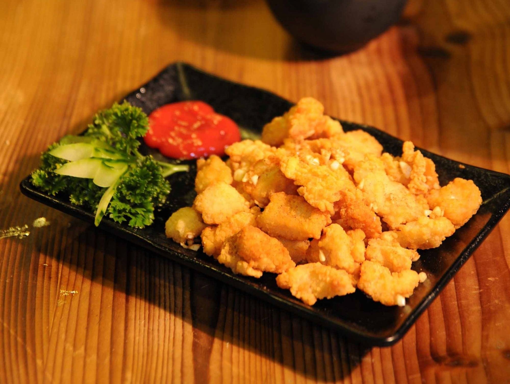 咸酥雞:帶著淡淡九層塔香氣的油炸咸酥雞,可以用起泡酒或香檳來搭;它的酸度和氣泡可以平衡油膩感,讓味覺清新,煞不住車?yán)?