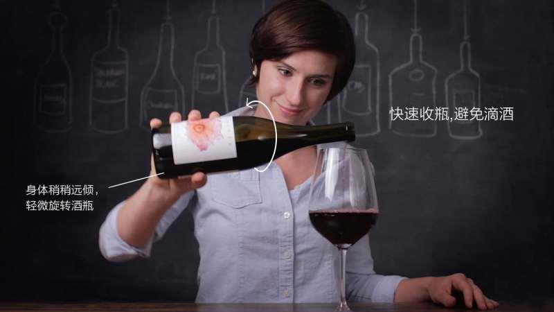 當(dāng)?shù)咕普吒械奖械木屏靠煲_(dá)到要求時(shí),可將身體稍稍遠(yuǎn)離酒瓶,再輕微旋轉(zhuǎn)酒瓶底部并快速收瓶,這樣就能在沒有任何工具護(hù)佑的情況下也能避免滴酒。當(dāng)然,這是一個(gè)需要不斷練習(xí)的動(dòng)作。