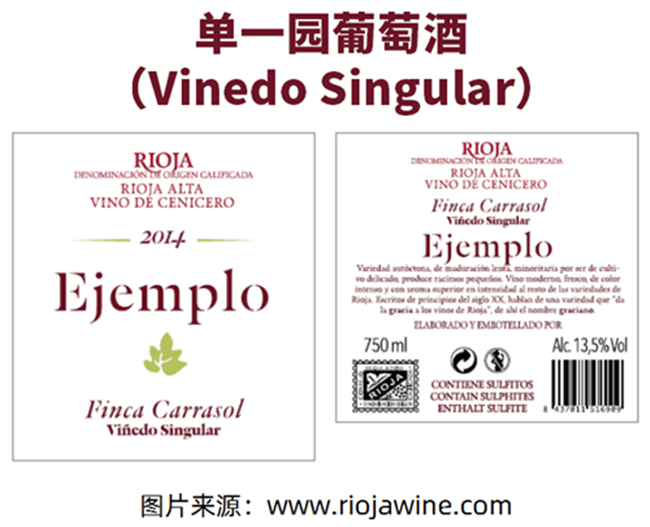在此之前,里奧哈葡萄酒僅根據(jù)陳釀年限分為四大類:新酒(Joven)、陳釀(Crianza)、珍藏(Reserva)與特級珍藏(Gran Reserva),其中新酒在新規(guī)中被稱為原產(chǎn)地保障(Generic)。如今,在陳釀年限的基礎(chǔ)上,里奧哈新增了地理標簽制度,包括單一園葡萄酒(Vinedo Singular)、村鎮(zhèn)級葡萄酒(Vinos de Municipio)和大區(qū)級葡萄酒(Vinos de Zona)三個等級,使葡萄酒更能突顯風土特征。以下是紅酒世界根據(jù)里奧哈產(chǎn)區(qū)官網(wǎng)(www.rojawine.com)的信息整理的里奧哈葡萄酒標簽的圖文介紹。