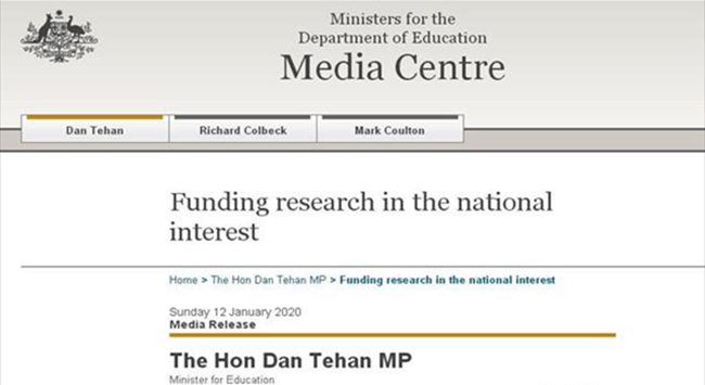 聯(lián)邦教育部官網(wǎng)12日?qǐng)?bào)道,聯(lián)邦教育部長特翰(Dan Tehan)宣布,政府將通過澳洲研究委員會(huì)(ARC)為20個(gè)新的研究項(xiàng)目提供950萬元的資金。獲資助的項(xiàng)目包括:蒙納士大學(xué)提出的調(diào)查確定葡萄酒地理標(biāo)志所需的標(biāo)準(zhǔn)、證據(jù)和程序,這些標(biāo)準(zhǔn)、證據(jù)和程序用于貿(mào)易協(xié)定和法律糾紛。澳洲天主教大學(xué)提出的開發(fā)一個(gè)在線工具,為數(shù)字社會(huì)中的兒童識(shí)別和分享最佳實(shí)踐,包括數(shù)字媒體生產(chǎn)、網(wǎng)絡(luò)安全教育、數(shù)字游戲和數(shù)字育兒等領(lǐng)域的新資源、材料和項(xiàng)目。