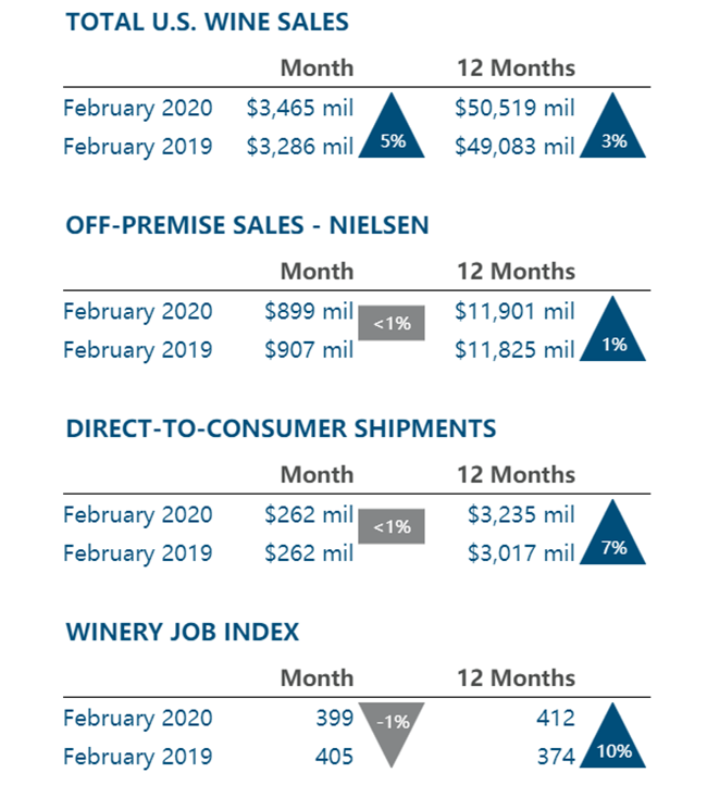 市場研究公司bw166報告稱,在過去的12個月中(截至2月底),美國葡萄酒的總銷售額增長了3%,達到505億美元,2月當(dāng)月的總銷售額增長了35億美元。在截至2月22日的四個星期中,銷售額下降了1%,至8.65億美元。