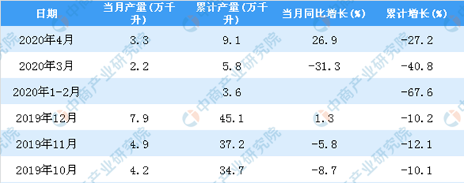 2019-2020年4月全國(guó)葡萄酒產(chǎn)量統(tǒng)計(jì)數(shù)據(jù)