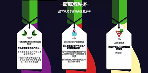 超過35%的受訪者(不包括中國和中國香港地區)表示有機葡萄酒和生物動力葡萄酒在未來兩年將超越品種葡萄酒,發展潛力最高。有機葡萄酒的流行在比利時已成為一種趨勢,在日本也是如此。日本也對自然酒有著濃厚的興趣。