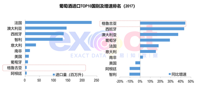 沿海葡萄酒小產(chǎn)國(guó)格魯吉亞增長(zhǎng)快速,增速超過(guò)40%,躋身十強(qiáng);