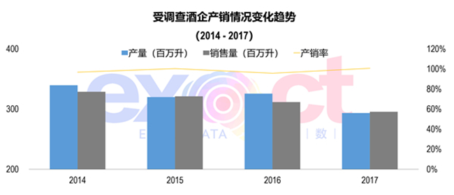 自2014年以來(lái),國(guó)產(chǎn)葡萄酒企產(chǎn)銷率維持在95%以上,基本能實(shí)現(xiàn)產(chǎn)銷平衡。2017年葡萄酒的產(chǎn)量和銷量雙雙降至近幾年來(lái)的最低值,但產(chǎn)銷率為100.73%,為近幾年最佳平衡點(diǎn)。