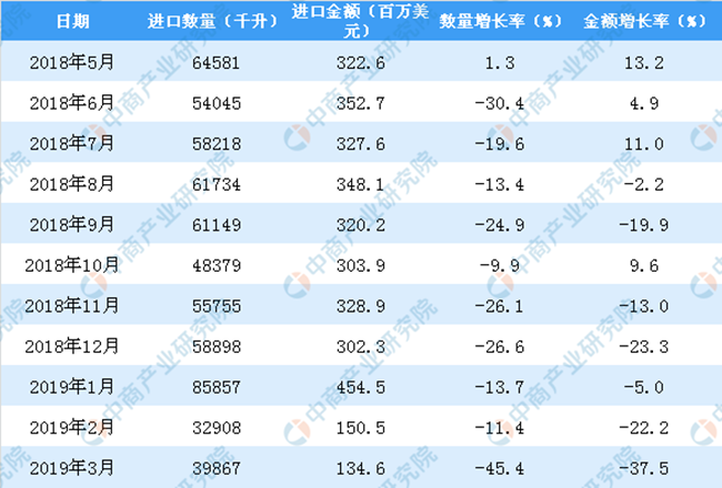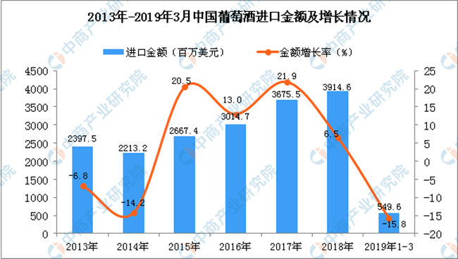 6. 2019年3月中國(guó)葡萄酒進(jìn)口量及金額增長(zhǎng)情況分析