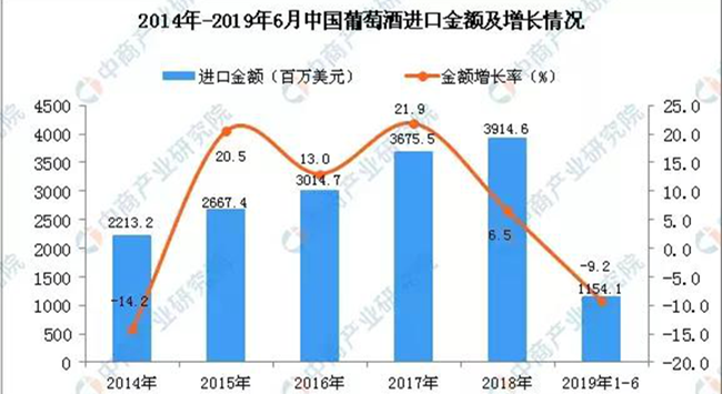 近日,中商產(chǎn)業(yè)研究院發(fā)布了一份2019年1-6月中國葡萄酒進口數(shù)據(jù)。以下是今年上半年中國葡萄酒進口數(shù)量及金額增長率情況。