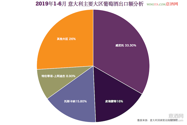 其中威尼托(Veneto)大區(qū)的出口額達到10億歐元,較2018年同期增長3.6%。皮埃蒙特(Piemonte)大區(qū)的出口額達到4.79億歐元,較2018年同期增長4.9%。托斯卡納(Toscana)大區(qū)的出口額達到4.75億歐元,較2018年同期增長4.3%。特倫蒂諾-上阿迪杰(Trentino-Alto Adige)大區(qū)的出口額達到2.68億歐元,較2018年同期增長2.4%。