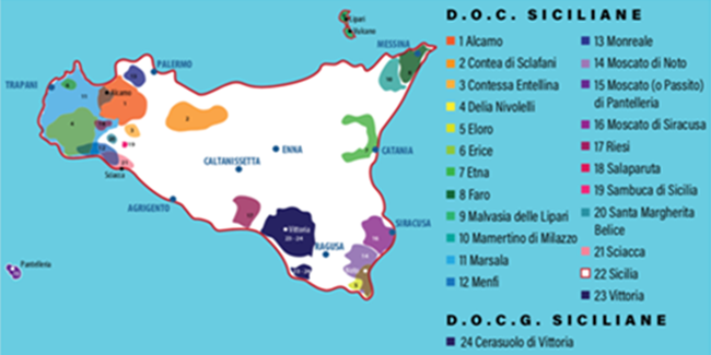 西西里地處歐亞中東的十字路口,是地中海最大的島嶼。大自然的恩賜使這里十分適宜葡萄生長。島嶼整體呈典型的地中海氣候,但又因島內(nèi)多樣性的地形,造就了各具特色的區(qū)域風格:內(nèi)陸干燥而熾熱,海岸暖風習習,埃特納火山以及山丘地區(qū)濕潤而涼爽。因此,西西里成為了意大利最大的葡萄種植區(qū),出產(chǎn)各式性格鮮明的葡萄酒。西西里因其戰(zhàn)略性的地理位置,在歷史上曾是兵家必爭之地。也成就了其悠久的釀酒歷史,最早可追溯至公元前8世紀。如今的西西里是意大利第一個追求有機種植的地區(qū),尊重自然和可持續(xù)性發(fā)展。越來越多的釀酒師致力于打造新鮮而直接的美酒,選擇更為現(xiàn)代的風格,適應國際菜肴的搭配。近年來,西西里葡萄酒生產(chǎn)取得了突飛猛進的進步:2018年瓶裝產(chǎn)量約為8000萬瓶,較之2017年的3000萬瓶增長了167%。而2019全年的瓶裝產(chǎn)量預計會達到1億瓶。