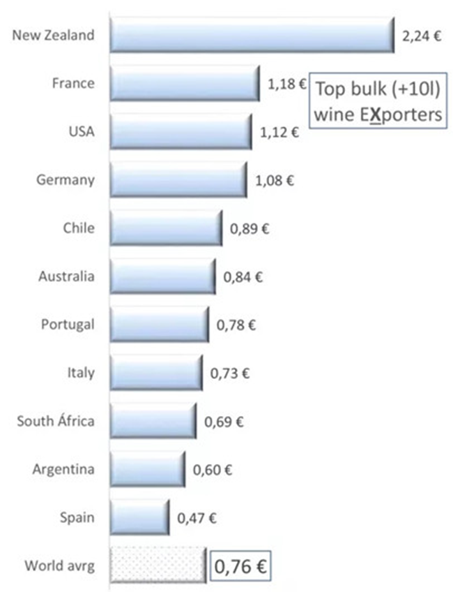 世界散裝葡萄酒的平均出口價(jià)格為每升0.76歐元。
