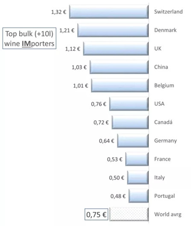 世界散裝葡萄酒的平均進(jìn)口價(jià)格為每升0.75歐元。