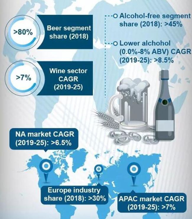 6. 到了2025年,無醇葡萄酒和啤酒市場規模將達到300億美元