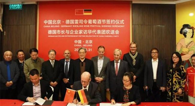 近日,德國市長與企業(yè)家訪華團一行在圓滿完成了北京考察和調研工作后,來到王府井全聚德紫云花廳,就“德國雷司令葡萄酒節(jié)”落戶北京相關事宜進行了座談,會后中德雙方代表還舉行了“德國雷司令葡萄酒節(jié)”簽約儀式。