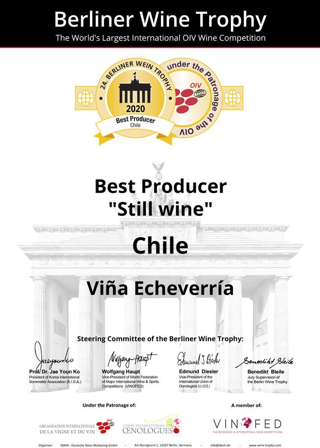 (2020柏林葡萄酒大獎賽-智利最佳生產(chǎn)商 榮譽證書)